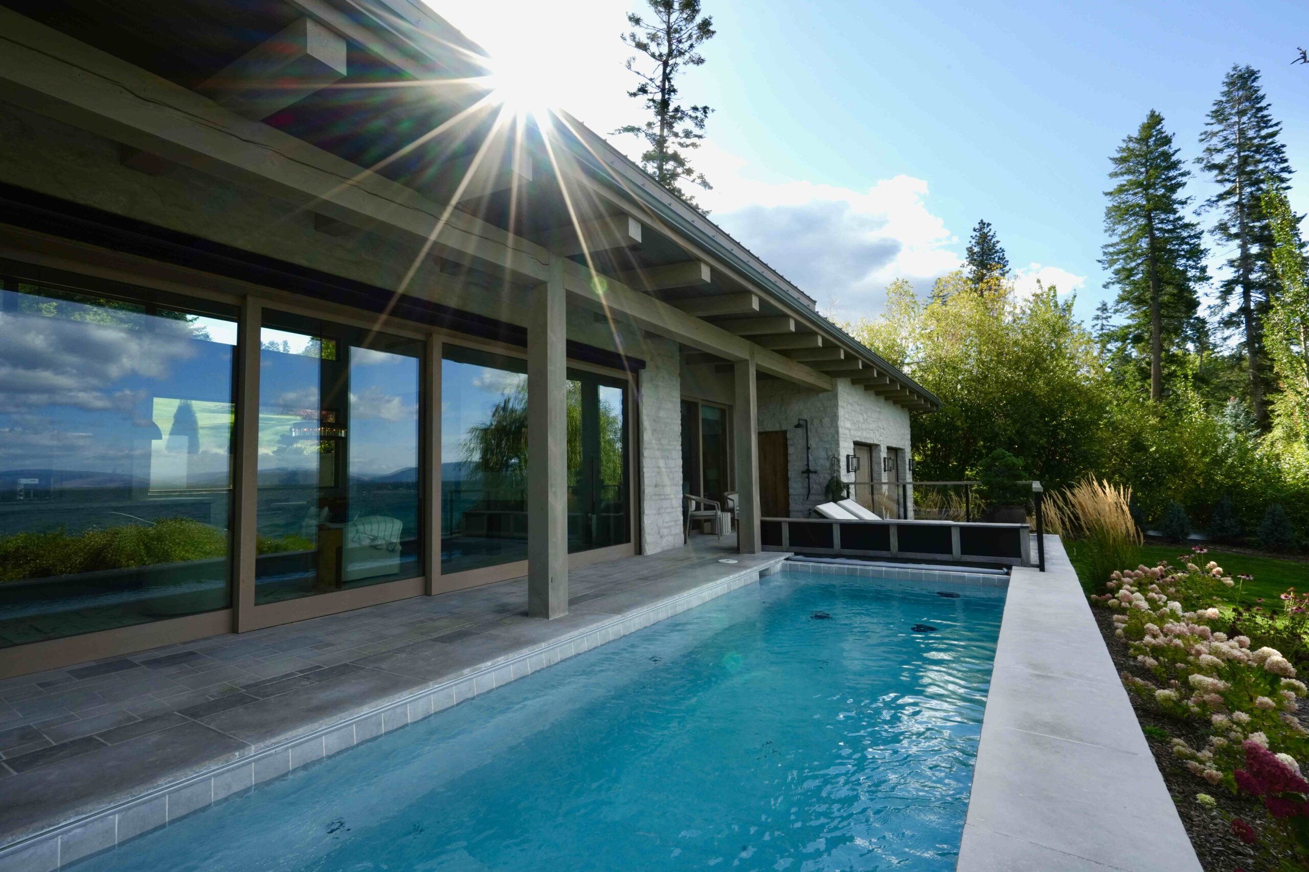 Valley Glass provided the sleek and modern Sierra Pacific Windows and Doors, renowned for their thin profiles and crystal-clear views, perfectly complementing the expansive, panoramic views in this home. Additionally, the Weiland Lift and Slide Doors installed by Valley Glass offer easy operation and a low-profile track system, enhancing both functionality and design.